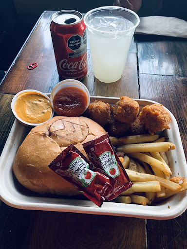De visita por no se que número de ocasión junto a mi esposa, siento que actualmente no es lo mismo que era hace algunos años cuando recien empezaban, ya que en varias ocasiones en la actualidad nos ha decepcionado tanto hamburguesas de res como los boneless, en esta ocasión fue mejor la experiencia en cuanto a sabor y porción de la comida, solo pequeño inconveniente al hacer el pedido, los dos pedimos la hamburguesa Brambs, la cual la descripción te dice que es doble pechuga de pollo empanizada, pero al llegar la orden y verla bien, era literal el pan de hamburguesa con 4 boneless únicamente, obviamente esa no es la presentación q deben llevarla por experiencia propia lo sabemos, en ese caso como le comente al mesero y gerente, pues mejor se hubiera pedido una orden completa de boneless de 9 piezas si no me equivoco, pero bueno, el punto fue que después de hacer esa observación y reclamo, muy amables nos resolvieron y nos llevaron de nuevo el pedido ahora si tal cual debe ser servido, y pues si, gran diferencia, muy buena porción y sabor, así que para que estén atentos con ese detalle, hay que exigir lo que es únicamente, ya que la expectativa es una y te decepcionan la experiencia con ese tipo de imprevistos, además de que es tiempo más en espera, pero bueno, si recomiendo en base a esa visita, lo que es esa hamburguesa, papas bien, y por cierto la limonada ahí si, nunca...