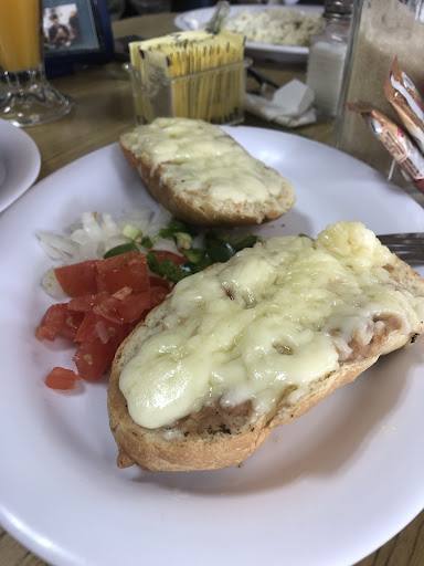 La comida es muy rica, pedimos un guateque, unos molletes, dos chilaquiles verdes con queso y menudo. El queso gratinado del guateque estaba muy rico, buena porción, el menudo no estaba grasoso. El jugo de naranja natural fresco y el café de refil 10/10 en sabor.