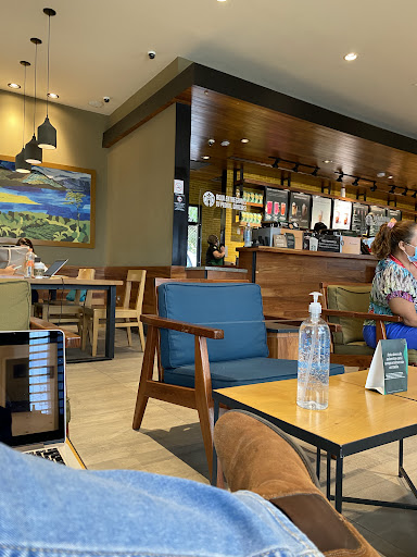 Read moreLos alimentos son lo mismo que cualquier otro Starbucks, el ambiente de igual manera. El servicio fue pésimo, nadie me atendió cuando llegué y al estar en caja para hacer mi pedido tardaron bastante en atenderme y no tenían cambio. El tiempo de entrega de los alimentos fue tardado y el lugar estaba sucio con basura en muchas de sus áreas y mesas. Yo mismo retiré la basura de la mesa que ocupé, había personal que estaba trabajando, las mujeres trabajaban y los hombres estaban distraídos en otras cosas. Se debería poner atención en la limpieza del establecimiento, los alimentos se puede entender más la tardanza ya que hay muchos clientes y tienen entrega de plataformas como Uber...