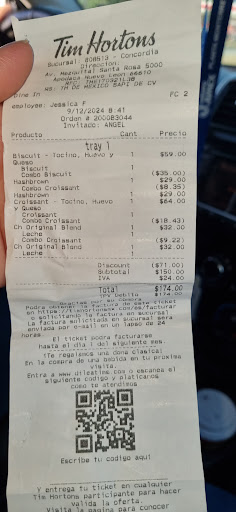 Read moreVisitar Tim Hortons es siempre una experiencia bastante positiva, sobre todo si buscas un lugar cómodo para desayunar o tomar un café a media tarde. La atmósfera es relajada y moderna, con mesas bien distribuidas y un ambiente acogedor que invita a quedarse un rato, ya sea para trabajar en la laptop, leer un libro o simplemente platicar.