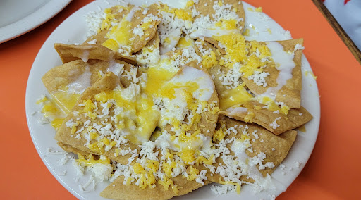 To start, we were given totopos (nacho chips) with cream, American cheese, and shredded White Queso. It was delicious! These are on the house, as starters.