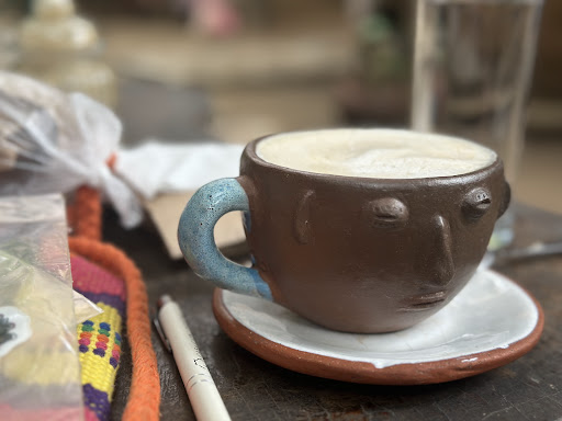 What a perfect spot for breakfast pastries and coffee! This is hands down the best coffee I’ve had in Oaxaca (including the city and Porto Escondido areas) and the pastries are to die for, also the best I’ve had in Oaxaca by a long way! It takes a lot for me to say that being spoilt by fresh bakeries in London…the pain au choc I inhaled two days in a row and it was crispy pastry but melty choc. Get there soon after opening each morning or you’ll miss out on the amazing pastries bought freshly baked by their patisserie partner. Lovely chilled vibes, a little library of books and some artisanal clothing and jewellery add to the local vibes. Very friendly owner and servers. Very reasonably priced. You...