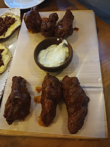 Los volcanes tenian un sabor aceptable pero no serían mi opción número 1 para comer birria en Oaxaca. La decepción para mí personalmente fue que las alitas búfalo estan marinadas en salsa búfalo, la clasica salsa de botella de vidrio con tapa verde de plástico, que compras para ponerle a las papitas y botanas. No con la salsa estilo Buffalo que se usa regularmente.