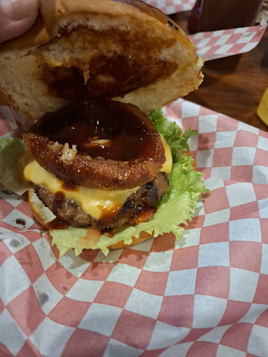 Read moreUn buen lugar para comer hamburguesas y hotdogs, su sazón es muy común y aunque la carta dice que son de sirloin, tengo mis dudas. Esa noche nos tocó la carne un poco cruda en el centro y no pudimos terminar de comer las hamburguesas. El servicio es bueno, se esmeran en atenderte y fué relativamente rápido. En cuanto al ambiente, me pareció bien aunque es más inclinado a gente que le guste el deporte, esa noche había fútbol americano. Había un grupo de bikers y terminando el fútbol, se enfocaron a darle gusto a los motociclistas con videos de esa temática, no digo que esté mal, pero habían muchos comensales que empezaron a retirarse, entre ellos nosotros, porque ya no fué de nuestro interés estar viendo esos videos. En general bien, los precios no son económicos, pero si quieres pasar una cena con ambiente deportivo, es buena...