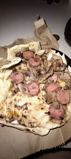 When our order arrived, it was missing several of the ingredients listed in the menu. After asking, they were later provided (except tomatoes; they had run out but didn't say anything when we ordered). The music was just...