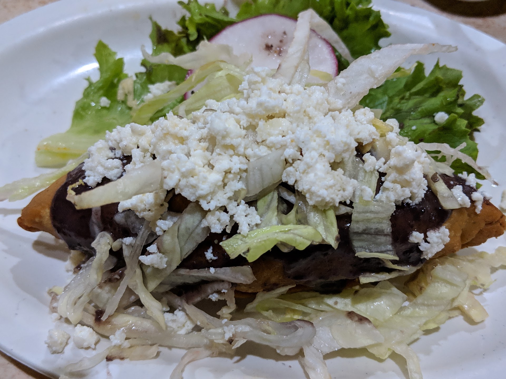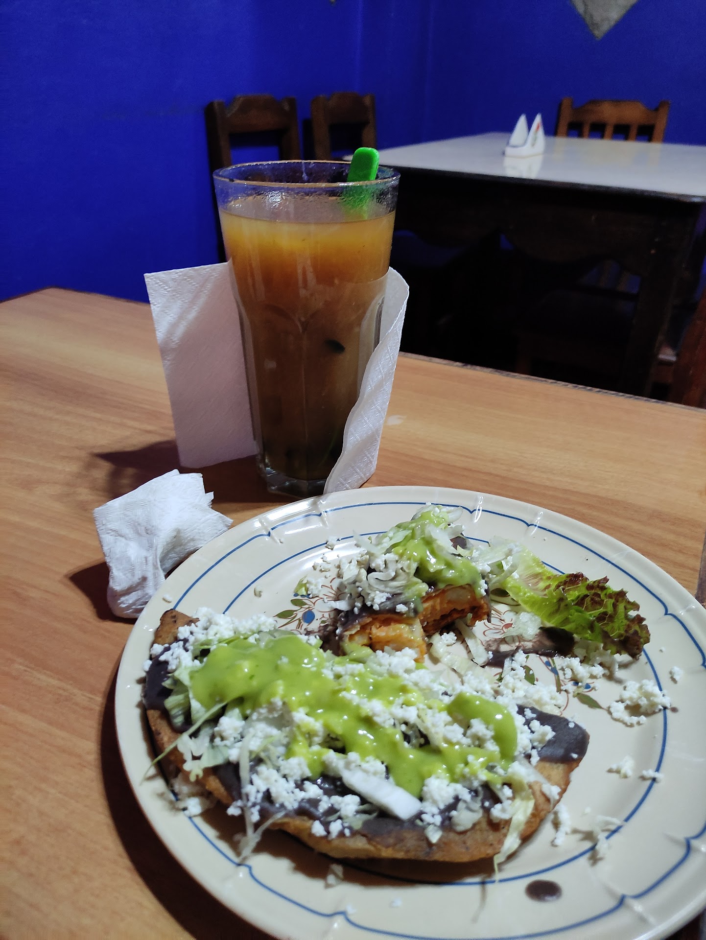 Read moreTenía expectativas altas de este lugar: gran error. El espacio está ubicado en esquina y es muy amplio, con mesas incluso afuera sobre la acera. Lo primero que llama la atención es la falta de menús. Ni siquiera hay un menú general sobre la pared. Así que hay que andar preguntando los productos varias veces, así como costos, porque en Oaxaca son conocidos por cambiar precios para turistas y gente de otros lados. Aunque ya sabía que iba por una tlayuda quería ver qué otras cosas había en el menú. Se me hizo muy cara una tlayuda combinada(mi favorita) en $115, así que pedí una sola carne, la cual por cierto vino en una sola pieza (sin cortar). Me sorprende lo popular que se ha vuelto esta práctica. Pero yo prefiero que corten la carne en pequeños trozos y no tener que sufrir para masticar. En fin, la tlayuda estaba muy sencilla. Nada que resaltar. El servicio creo que depende del mesero que te toque. El que nos tocó era muy malo, no se daba a entender y no sabía los precios de las cosas, y desapareció justo antes de necesitáraramos la cuenta. Así que alguien más tuvo que hacer un cálculo rápido y decirnos cuánto era la cuenta. Ah, pedí un molote y eso salvó la noche. Estuvo muy bueno. Subo la foto. De la tlayuda no tomé porque no me inspiró. Habiendo tantos lugares para cenar tlayuda que son mucho mejores, probablemente no regrese...