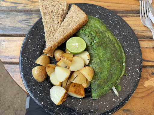 I ordered the Omelette de Espinaca, which was very green :) While this creativity is refreshing, I would prefer real spinach leaves in the future. The pan de masa madre was delicious. The omelette dish was a bit carb-heavy due to the bread and additional potatoes, but this was clearly indicated on the menu, so no complaints there. I'd personally prefer more veggies / greens.