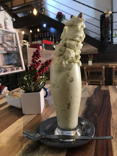 Read moreGreat little out of the way place. Very neat and clean and the staff were super polite with my lack of Spanish. I ordered a green something smoothie, thinking it was probably green veggies and such given the other healthy choices. Surprise! I’d ordered a pistachio smoothie and when they brought it out....well, see for yourself! I just laughed at how impossibly colossal it towered above the tall glass! It was delicious! Rich, smooth, a little grainy and a taste of real pistachio. The only problem was it was so cold it froze my throat!! HA! What a hidden gem!...