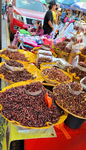 This market is huge but in about 2 hours you can get a good tour of it. The rows are usually organized by various themes like meats, yes raw meats and fish for sale, veggies and fruits, juices, clothing, dry goods, moles, crickets and so on. We were not intending to buy anything but bought some fruit and sat at a food stall to eat freshly made delish squash blossom and cheese empanadas- might have been the best we have had! They were very lovely - we did ok with our limited Spanish.