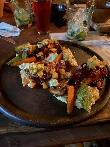 El ambiente, la decoración y la música son excelentes, desde que entras te sientes bienvenido, el personal muy amable, hay juegos de mesa para amenizar la espera de los alimentos, el concepto lo denominan “slow food”, ya que los alimentos son preparados al momento, mientras una entrada y un cóctel para esperar el favorito fue el palmeritas, el guacamole delicioso y fresco, o un queso fundido con sabor suave y con ligero toque de mantequilla. En todo momento el personal está atento.