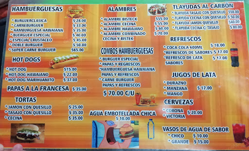 Read moreLugar al aire libre, no tiene estacionamiento, si tiene servicio para lavado de manos. Variedad de comida rápida y típica como las tlayudas. Recomiendo la Super carne Burger (3 piezas de carne) los Hot dog. También venden cervezas. La atención buena, los alimentos ricos y los precios accesibles y acordes a la calidad del producto....