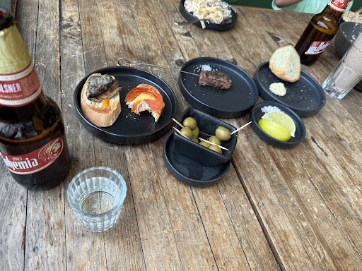 The bar staff seemed friendly and English capable. And their menu seemed to offer tapas, which I have also tried and loved in Spain.. so decided to start here because I just needed a few drinks with small plates of tasty protein like octopus or anchovies. However, was a bit disappointed, tapas here were mostly a thin slice of chorizo or cheese with a drop of yummy sauce on an unfortunately large slice of bread.