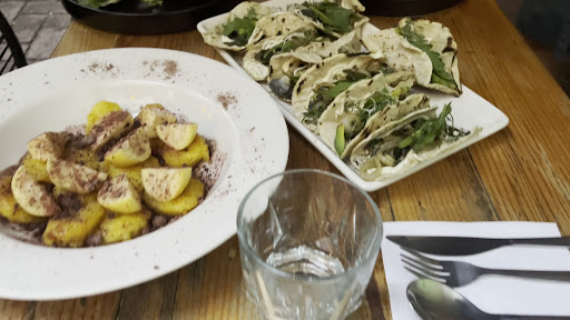 Read moreI ate here 3 times while in Oaxaca. The staff was lovely and attentive, the little garden in the back was mostly enjoyable and the food was good though not consistent with flavor. The first time I ordered Papas con Hierbas and a mole bowl and they were perfect. The second time I had the waffles as they said they were out of papas and my friend ordered the mole bowl which says comes with hongos but they served her carrots in stead which she hates and we had to ask for the hongos. the third time I went with a friend after raving about the papas and we waited an extra half hour as they said they were out of them but someone was coming from the market and they would make them. Yet they had so little flavor and weren’t the same as I had raved about. We also ordered a chorizo hongo sandwich which says comes with sauerkraut but when placed in front of us, had none and we had to ask for it. The waiter was very nice and gifted us two tiny chocolate skulls which were really good, it could have just been an off day for them. The garden that had been tranquil had an annoying digital nomad on a business call talking very loudly interrupting everyone, despite that there is a coworking space he could have taken his call in. I realize that’s not the restaurants fault but it would be nice to put some kind of policy to leave work calls at the door to preserve the tranquility of the space...