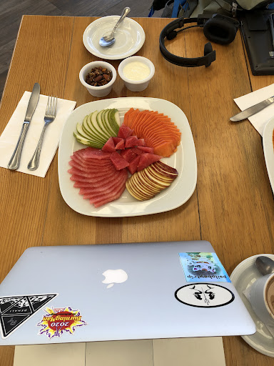 They have a rooftop with a good view. It is mostly covered to protect you from the sun. A lot of sockets to plug in. It might get very hot during the day. No high tables where you can work standing up. Chairs are low and I’m finding myself always hunching my back. Maybe because I’m tall.