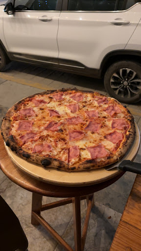 The people calling this an "amazing pizza" really have no business discussing or reviewing food. The taste of the pizza is OK at best. The problem is that you're paying an absolute premium price so you should expect to get a really good pizza. Which isn't the case. They have a system of two sizes, small and large. If you're an adult male with a good appetite there's no way you'll be satisfied with a small size. The problem with the large size is that they're all around 400 pesos each, which is really steep for a pizza. Especially one that isn't really that good. Add to that the fact that they charge 5% extra if you're paying by card (such an obvious money grab) and I would advise you not to go here. I will say the service was...