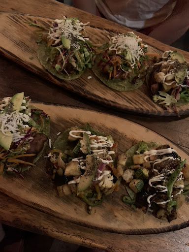 Amazing! Came here based on the Google reviews and was not disappointed! The ambiance of the space is very enjoyable, with seating both inside and outside (alongside the busy street) - which is sometimes a rare find if you go into the smaller quarters of Zicatela. The presentation of the food was amazing, very well laid out, and the tacos were filled with a small mountain of veggies and toppings. The service was very good, primarily in Spanish but the menu comes in both English and Spanish. The tacos were tasty, and come in a variety of options, seafood, meat, veggie (great for vegans and vegetarians), they also come in BOTH/EITHER grilled OR tempura, but the servers were willing to mix the orders (tacos come in 3's). The prices were also great, from about 130-165 pesos for 3, depending on the meat or vegetable. Would come here again in...