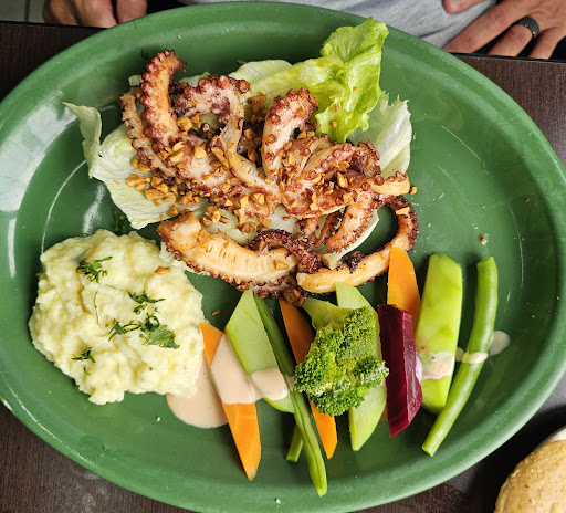 Read moreThis is not a fancy tourist place and it's off the main tourist area but we're so glad we stumbled upon it! I had garlic salmon and my husband had grilled octopus. We were both satisfied. We're pescatarian so didn't have the rice since it's made with chicken stock but they substituted it for mashed potatoes. It's good, uncomplicated food with an authentic local vibe and reasonable prices. The most exciting thing?! Shots of Don Julio 70 were HALF the price of the tourist...