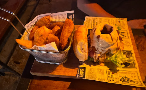 Service: Our server was an aloof young woman who approached our table with a dismissive attitude. she forgot my order for water and i had to remind her. She brought our appetizer AFTER she brought our main courses. She then essentially ignored us for the rest of our meal. she didn’t ask if we wanted dessert and had to be told twice to bring the bill. she ruined my experience at this place. Food: we ordered BBQ wings which had an overly thick sauce. Very unappetizing. I ordered the spaghetti carbonara, and was served a plate of spaghetti noodles with alfredo sauce and bacon bits. in other words, it was not at all spaghetti carbonara. my friend’s burger was good, i think. Atmosphere: the space is cute, but they kept allowing stray dogs from outside to wander the restaurant and beg for food from customers. That is beyond disgusting.