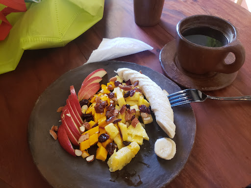 Le agarré mucho cariño a este lugar los días que estuve en Puerto Escondido; Es un lugar muy discreto al final de la punta lo cual hace que mantenga un perfil bajo, con un concepto muy único Aprecio mucho cosas como el que ellos tengan su propia leche de almendras la cual me parece maravillosa. Su bebida que más me gustó es si duda su Flatt White, la leche de almendras aporta muchísima textura, y su café no le tiene miedo a ser acido, pero se queda justo al borde, una chulada. Y lo ideal para acompañar, el pan de masa madre con miel, plátano y cacao nibs, este pan mantiene su sabor fermentado y ligeramente ácido, pero esas mordidas con plátano se complementan delicioso, con una miel de gran calidad y sus cacao nibs. Su Chai Latte es muy suave, me pareció como una leche ligeramente espaciada y la textura que tiene es deliciosos, ideal para acompañar unas galletas me parece ideal, pero el dirty chai potencia mucho el sabor, y es d ellas pocas veces que lo disfrute más frío, aunque eventualmente se rebajará (pinches hielos) También probé su Matcha, la verdad no quiero hacer una crítica objetiva ya que este nunca me ha gustado, pero la energía que da es increíble. Jamás había probado el espresso tónico, dentro de una bebida refrescante y frutal, con lo agrio del jengibre y el dulzor de la naranja, el café pasa casi a un segundo plano, como aromatizando la bebida, pero no es una bebida para acompañar el desayuno en lo más mínimo. Y por último probé la prensa francesa, este curiosamente es más fuerte que un americano pero el sabor es más rebajado, como si fuera un té de café. En lo personal no me volvió loco El servicio de parte de todos los que me llegaron a atender en diferentes ocasiones fue excelente y súper amable, explicándome el proceso que lleva cada una de sus bebidas. Si tuviera que rankear lo que consumí para recomendar que pedir: Flatt White-Pan de masa padre con miel Dirty Chai latte Espresso Tonic Chai Latte Prensa...