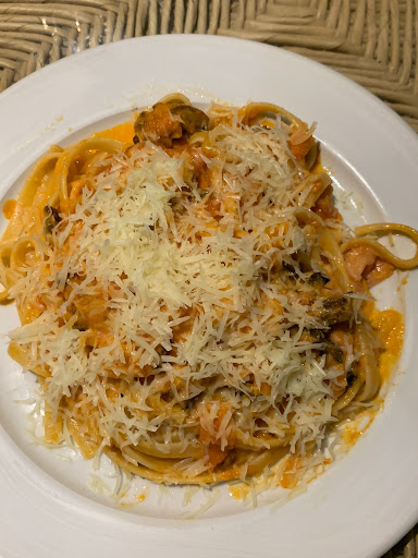 I ordered fettuccine pasta with a creamy tomato sauce and shrimp. Cream of shrimp.