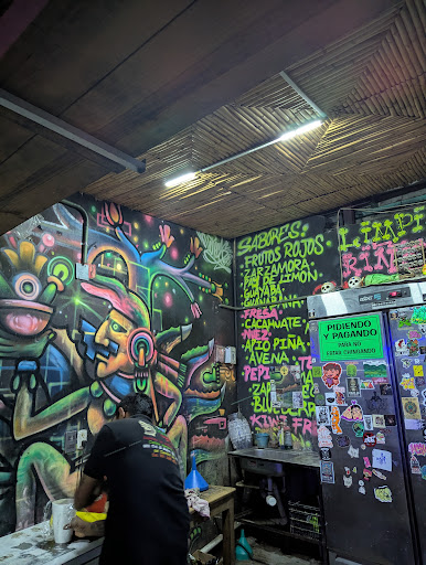 El lugar tiene murales hermosos de nuestra madre Máyahuel, aunque mis compras fueron para llevar hubiera amado quedarme a escuchar la música y tomarme mi pulquito bien a gusto, el ambiente realmente es ideal para eso. Platicando con el dueño (creo que era el dueño jaja) me dijo que ya están por cumplir 10 años con su negocio y se nota la pasión por su local. El lugar tiene muchísimo corazón y es hermoso ver un lugar tapizado de nuestra bellísima cultura mexa! Le dije cuando amaba el pulque y lo encantada que estaba con su local y me regaló unos stickers haha