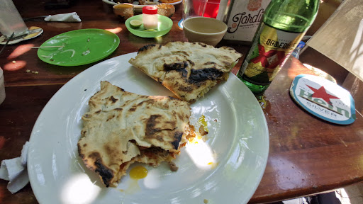 This is a nice place with both an indoor and outdoor seating area. The beer was cold and served quickly by friendly wait staff. We ordered two tlayudas that we shared between 4 people. They were delicious. Like most Mexican bars, you will get served free finger‐food (botanas) as long as you keep drinking. Botanas range from peanuts to fish tacos, and it's all tasty. This is a great place to hang out...