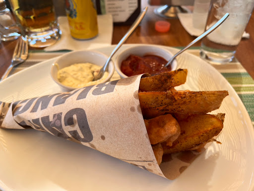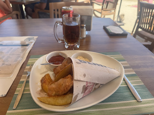 Read moreAbsolutely wonderful food, right at the end of the cruise ship pier. My wife had the fish and chips, and in spite of not being a fish person, loved it. Large portions of battered fish (Mahi) and crispy chips. I had their signature burger with pineapple, bacon, and mantego cheese. It was huge, hot, and juicy. The included fries were hot and crisp. We started with guac and chips. It was wonderful and the portion too large to finish. Not cheap but...