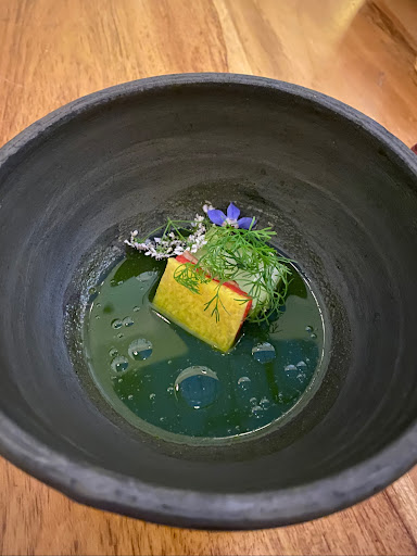 The âramenâ was the worst dish of all as it was literally a broth of zucchini & baby romaine leaves. THATS IT. nothing âramenâ about it at all. No noodles, kombu, tare, or anything at all that would have you reference or touchstone any ramen youâve had before in your life. It was just a lackluster water bathe for zucchini and lettuce. Not even a mushroom!