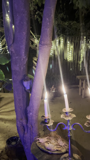 I went to Sambodhi Garden with a group of 15 people, and we were lucky to get this super cozy booth that I later found out was handmade by the owner and his dad. It was honestly the perfect spot to land after hiking to Punta Cometa - comfortable, inviting, and full of good vibes.