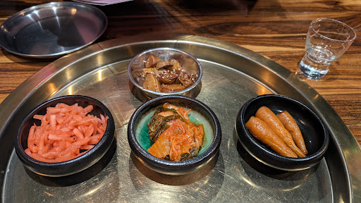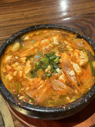 Dolsot bimbimbap- rice in hot clay pot with meat and Korean style veggies on top with Korean hot pepper paste. Make sure to ask for the paste on the side so you can control the spice level to mix into. Kimchi soft tofu soup regular spicy- added beef instead of pork. This is more of a preference. The soup was solid with all the right veggie tables and good portions of the beef in it! Like pretty big chunks than some of the Korean restaurants I’ve been to. This really hit the spot. Hearty with just the right amount of spicy with a side of rice (order separately). Side dishes: kimchi, pickled onions and radish and pepper, cucumber salad and one other item i can’t remember. These are free. The owners made it a point to be as traditional as possible. This is definitely a plus since the side dishes can get pricey with some of the ingredients needing to be imported from outside of Mexico.