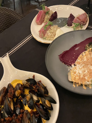 Food and Beverage • Wine: We requested a bottle of dry white wine due to the unavailability of most wines on the menu. However, we were served a very sweet white wine priced at €60. When we expressed our dissatisfaction, the staff refused to exchange it, leaving us with an expensive wine that did not meet our expectations. • Mussels: Based on staff recommendations, we ordered the mussels. Regrettably, they were not fresh—possibly even canned—and we ended up not eating them. • Gem Salad: This dish was decent but unremarkable, offering little in terms of flavor or creativity. • Seared Tuna Steak: The highlight of our meal, the tuna steak, was well prepared and remarkably fresh. • Espresso Martini: Another redeeming aspect was the espresso martini, which was very well made.