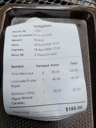 Le pongo 2 estrellas porque siempre se les olvida algo cuando pides a domicilio y siempre salen con la excusa de para la próxima se lo reponemos y al final eso termina cansando. La torta a la Mexicana muy rica, una que lleva guacamole y carne arrachera me parece. Pero el servicio de cocina tiene mucho que mejorar. En el servicio de reparto no hay quejas, el chavo siempre llega aunque esté lloviendo. Pero con mis compañeros de oficina dejamos de pedir precisamente porque siempre, siempre se les olvida algo en los pedidos, si no es el agua es algún o varios ingredientes en los platillos...
