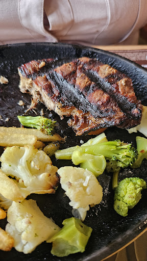 Sin embargo, la experiencia con los cortes de carne dejó mucho que desear. Mi mamá pidió un New York bien cocido y llegó carbonizado, extremadamente seco. Yo pedí mi corte término tres cuuartos y también llegó demasiado hecho, perdiendo jugosidad y quedando seco. Fue una decepción, especialmente porque la espera entre la sopa y los platillos principales fue de media hora.