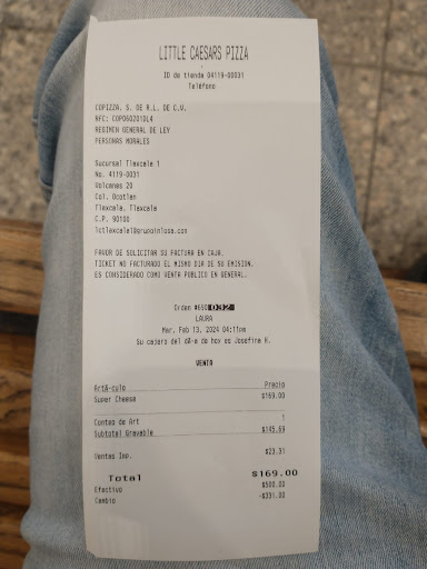 Read moreAsistimos este viernes 26 de Abril a la sucursal ubicada en Ocotlan, Tlaxcala alrededor de las 3:30, compramos 2 pizzas y como una era especial nos pidieron esperar alrededor de 10 a 12 minutos. La tienda se encontraba llena, pero todas las mesas llenas y todos los empleados trabajando a marchas forzadas por lo que el calor era muy intenso, iba acompañado de mi esposa la cual tiene 8 meses de gestación. A consecuencia del calor se comenzó a marear por lo que decidimos esperar fuera. Le pedí a uno de los empleados una silla para que mi esposa se sentara en lo que me entregaban mi orden. Me respondió que no les permitían sacar las sillas del restaurante, pedí hablar con el gerente, el cual se llama Juan Carlos Huerta y me volvió a responder lo mismo, que como tienen circuito cerrado no les permiten sacar el mobiliario. A mi se me hace una falta de...