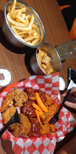 Muy buena opción cuando se quiere comer boneless. Hay variedad en el menú, como lo es hamburguesas, ensaladas, alitas, dedos de queso, aros de cebolla, papas fritas y otras opciones. El precio es bueno y lo que se sirve es proporcional. La atención del personal es muy buena, aunque a veces parecen saturados por el trabajo, no descuidan los detalles. Lo único que no me gusta es que si quieres ordenar por teléfono es muy probable que no tomen la llamada, incluso si es en horas que no tienen gente, lo cual hace ir a ordenar al lugar y el tiempo de espera para la orden se pudo haber hecho en...