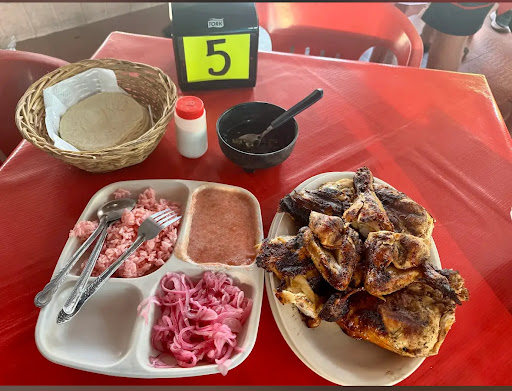 Right across the main collectivo stand (bus stand) is this excellent spot where you could grab a quick meal. The best part is that it's very inexpensive and the quality is excellent. You could have a 1/2 chicken for $3.50 US (70 pesos). The meat is very tender, juicy, infused with spices and cooked to perfection over charcoal. Ours came out perfect without any special requests, but you have the option to inform the waiter on how long you want your chicken cooked if you want it well done if you have a preference. The cost of the meal included sides which was a great deal! It includes rice, salsa, pickled onions and tortillas. They also give you a salsa on the table but we didn't touch it.