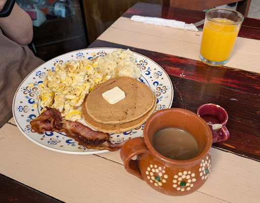 Read moreWe chose this for breakfast because it was well reviewed and convenient to Quinta Avenida, with an appealing menu. We each had a "combo friend" platter: one Traditional - scrambled eggs, bacon, seasoned smashed potatoes and pancakes - with oj (which wasn't totally thawed, so it was like a slushee) and one Jarochos - fried eggs, green and red sopes, refried black beans and fried plantains - with coffee. Everything was delicious and the staff was very patient with our Spanish, as they didn't speak English. Our bill was MX$288 and we had no problem paying with a card; they seemingly even accept Amex, though we...