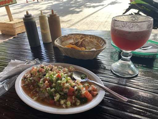 We ordered a soup and a an assortment seafood platter. It took 52 minutes to get the dinner. The soup was incredible (seafood). Rich flavor, very, very tasty. However, the platter was laughable. 3 pieces of small shrimp, a tiny piece of fish fillet and some octopus. The platter was around 350 pesos. For that you get the whole fish fried at a lot of places nearby.