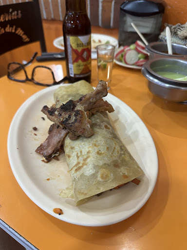 Servers: super nice and attentive, ours spoke English. Atmosphere: we sat up front near the road and it was nice - love the open air vibe. Inside decor is a little dated, but cool evenings, happy people, great smells, and a drink made all the chicken wall art fade away. Menu: I’ll have to say there are quite a few options for both vegetarian and vegans, in addition to tons of options for meat lovers. It’s a big menu. Drinks: it was a rather limited cocktail and beer menu, but the margaritas were excellent. I’m usually turned off by margaritas that are too sweet or citrus sour, but these were really good. Not too sour not too sweet. Highly recommend. Appetizer for vegetarians: we got the full guacamole and while the presentation was a little basic, the taste was great. We loved it. They also serve 3 salsas, grilled cactus, and lime/cucumber/radish fixings to everyone. All are great accents to the food. Dinner for vegetarians: we got the grilled vegetable plate (arrachera - kind of like fajitas) and split it between me and my wife and it was too much food and it was so good. Very flavorful and a good variety of veggies, including pineapple. Again, they don’t get bonus points for presentation, but that’s totally great when the food is so good. The tortillas they serve with the dish were excellent (again, best we’ve had in Playa). They were street taco style, fresh, and the perfect size/fluffy.