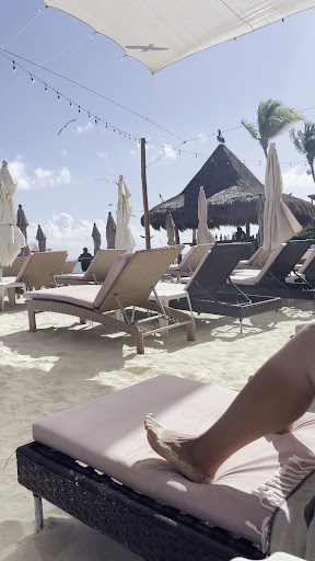 You have your own waiter, waitress, covered, or uncovered seating in terms of sun protection, and they come to you frequently for whatever you want drinks water, etc. does not come with towels, I think it was seven dollars for the day. The price is right as well. For one chair for the whole day it’s $30USD includes 2 to 4 drinks of your choice. Depending on what you order. It’s the best price I’ve found in playa beach clubs.