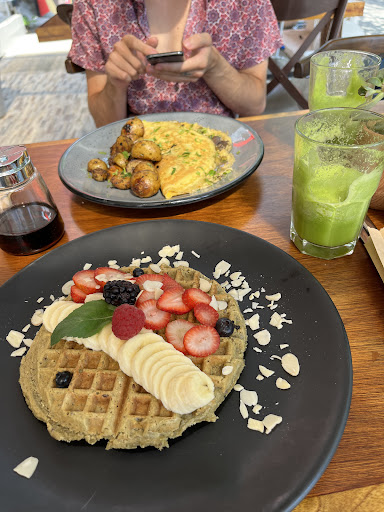 Read morefood looked nice but was not very tasty & quite expensive. my husband enjoyed his omelette but his potatoes were undercooked⊠sadly my waffle was also dense & undercooked inside like thick oatmeal rather than fluffy as a waffle should be. we came here because the sign for matcha waffles caught my attention but the texture being way off & lack of matcha flavor was extremely disappointing. also was disappointed there was no option for an iced latte. in a beach town like Playa cold drinks are the preference for many who donât want to drink hot coffee when itâs very hot outside, so we got green juice. I saw the raving reviews for this place and expected it to be great but...