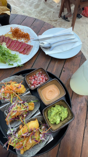 We happened upon INTI Beach by chance as my daughter wanted a restaurant by then water. We showed up without a reservation around 9pm on a Wednesday evening and the five of us were seated right away at very nice table overlooking the bay at the edge of the sand. They had several small fire pits lit into the sand which really added to the ambiance. Our waiter was very informative and patient with us going over the menu. As our drinks sweated onto the table our waiter was there diligently wiping it away keeping the table tidy. We were given a plate with various types of bread and a chili infused oil for dipping. We were also presented with a gift from the chef, a small taste of calamari with a sauce that was described to me. I cannot recall what it was but I do remember it being delicious. We each ordered a different entree and everyone was very satisfied. The price for drinks, dinner and tip was about $52 usd per person and I feel I got a very good value for the price. A few 1 star reviews claimed there was a mandatory tip and a minimum price per person but we experienced neither. If we come back to Playa del Carmen we will definitely go eat...