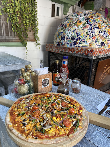 OMG!! Been coming to playa for over 10 years and never heard of this place until now. From walking up to the restaurant and being hit with that smell of wood burning, I knew this pizza was going to be good. What I didn't expect was it to be Unbelievably fantastic. The all dressed was a crisp, light but yet tender home made crust that, on its own had so much flavor you could eat it bare.The toppings were fresh, whole foods with little preservatives or chemicals. Sliced thinly so to not over power the rest of the ingredients. Usually, back in canada the pizza sauce is heavy, acidic or overly sweet and overwhelmes the entire pizza but not here. The pizza sauce made fresh with local grown ingredients, was just enough to meld with the other toppings. It was crisp, light, and the flavors all came together for an incredible dining experience. I have not had pizza this good in decades. The amount of care and pride that they take in creating their pizzas stands out among all the others. The service was extremely friendly, knowledgeable and without being pushy or over selling. It's not in the usual touristy area so definitely a hidden gem. They also have fresh baked thick large cookies that only use whole, fresh, locally, sourced ingredients and they warm them up in their wood fired pizza oven. The smell is out of this world. Warm, soft, chewy but with a slight crispy outside. I had to get the Coconut and the chocolate chip. Using only a few ingredients, mostly banana and coconut oil as their sweetener and binding ingredients, really allowed the flavors to shine through. (Better than some of the upscale bakery cookies back home.) The service is friendly, courteous and so unbelievably humble and unpretentious. If you like a flavorful, thin, (but not too thin crust) pizza, loaded with fresh toppings and not a thick, processed, doughy, weighed down with heavy amounts of awful chemical filled pizza sauce. This is a must!!! Limited seating in a cozy quaint atmosphere but they also have a huge take out clientele. ( I can see why) then, this place has got to be on your list of places to try. You won't regret it. Get off of 5th Ave!!! and treat yourself to a mouth watering, authentic Italian...