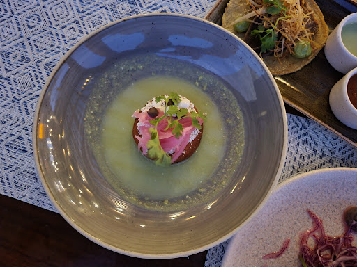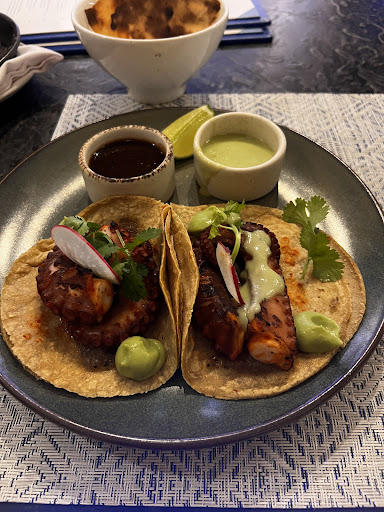 We got the crispy pork belly (Castacan) and Kibi with the Mexico City tacos (beef tongue tacos). The crispy pork belly came as a nice Spanish croquette which surprised us a bit but were absolutely floored with how it tasted. Light, crispy, and fluffy on the inside with a wonderful avocado black bean sauce compliment. The same could be said about the Kibi as well. Not quite sure what to expect but was floored with how light and crispy it was as well. The tacos were perfectly acceptable but could have used some acidity to help balance the flavor but otherwise great.