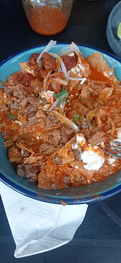 Read moreMi familia y yo fuimos , realmente este no era nuestro destino sin embargo decidimos darle una oportunidad a este lugar, pero desde inicio notamos que el lugar no era lo que esperábamos, el servicio desde el comienzo fue muy pobre , a mi hija mayor le llevaron sus alimentos y no Los cubiertos después de unas espera de casi 10 minutos tuve que levantarme a pedirlos, no nos ofrecieron periquera para nuestra bebe, y el lugar que nos proporcionaron no era ideal para que estuviésemos con la bebe ya que era una carpa y con muy poca ventilación, desde la entrada debieron de decirnos con que platillos del menú no contaban, nos llevaron el menú y hasta ahi la mesera nos comentó que era lo que no tenía, ya que estabamos listos para ordenar y cada quien sabia lo que iba a pedir se acerca la mesera y nos vuelve a decir "no se si les comentaron desde la entrada que no tenemos salsa roja por el momento, solo salsa verde" lo que es un poco incongruente ya que es lugar que segun se especializa en este platillo, encargamos nuestras bebidas que las siven en tipos vitroleros muy incomodo de beber, después de la espera por nuestros alimentos vimos que las porciones eran lo mejor que habíamos visto hasta eses momento, sin embargo un cabello en mi platillo lo arruinó todo, al final de cuentas procedimos a pagar y la chica que cobra muy emocionada me dice que me habían hecho un descuento en nuestra cuenta, a lo que respondí "así es, nos cancelaron el platillo que tenia un cabello" y lo que dijo ah una disculpa no sabia. Creo que deben ser claros desde un inicio con lo que ofertan . El hecho de que no eran ni las 12 del día y no contaban con salsa roja teniendo en cuenta de que cierran hasta las 3. El sabor de la salsa verde estaba muy ácida, nadie de mi familia se acabó los chilaquiles...