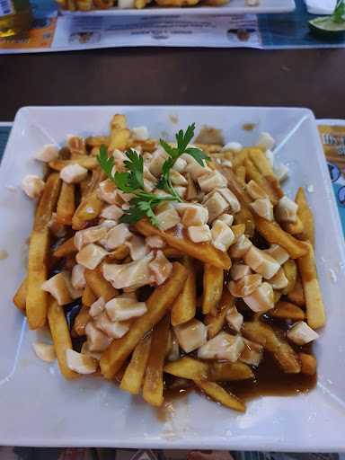 Read moreEDIT:My rating is based on only this visit and the seats noted below; in general it's a fun place, good food, service was good too. This restaurant is very French Canadian. The great majority of the clientele are from Quebec and speak only French. Kind of cliquey, but that's the draw. A popular location for watching hockey. If The Canadiens (The Habs) are playing, you better not root for the other team! The Montreal Poutine I had was delicious. The small plate was a lot of food. My friend had burgers and really enjoyed them. Unfortunately, two of our seats were in direct line of the spotlight projector so I was pretty much blinded the whole time. It was annoying, but there were no other tables available. Only two tables, one at each other at the end of the restaurant under the big screens are affected, so avoid sitting there. It was Valentine's Day and my birthday. The owner gave all the ladies a beautiful red rose. And my friends had them bring out a phenomenally delicious dessert. EDIT:My rating is based on only this visit and those seats; in general it's a fun place, good food, service...