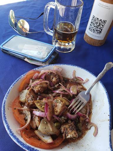 On my last day of vacation I found this Greek restaurant. Being well versed in Greek cuisine and having worked as a waiter at Milos in my younger days (which is for those who don't know a fancy high-end Greek place that has restaurant in at least 5 major cities around the world) I wasn't expecting much but I had been wanting octopus tacos for my whole trip and I wouldn't find any so I decided to try their Octopus with balsamic vinaigrette. I got to say I was pleasantly surprised by my order. Greek cuisine being about simplicity and freshness it was important for every ingredient to be spot on and I was delighted to get exactly that. I know how Greek people are (I admire and dislike them at the same time for that) but here the atmosphere was welcoming, easy going, genuine and also somehow appropriate for Playa Del Carmen. My beer was served with an ice cold mug which was a first for me here in Mexico and the service smooth and not pushy at all. I think Imma go back tonight and try their fish. Nothing bad to say although I perhaps would have liked a piece of bread to clean my plate but it was so hot outside that I didn't care to ask. Legit Greek cuisine! 490MXN for a generous plate and a beer. Apologies for the picture as I couldn't wait to take a few bites before taking it.