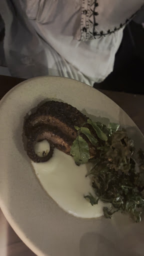 A moderately upscale restaurant with a focus on cooking things on the open flame grill. For appetizers, we had the aguachile, ceviche, and bone marrow. Bone marrow was beautifully charred and served with fresh tortillas as a makeshift taco. The marrow itself was super fatty and perfectly seasoned with a lot of that smoky char coming through. By itself, I would definitely crave some acidity but thankfully we also got the aguachile. The aguachile was blisteringly punchy with brightness and the seafood itself was bouncy and tasted fresh. The squid ink and avocado helped round things out and the dish ended up feeling exactly what I want from an aguachile. The ceviche was much less acidic and the sauce the fish was served in was more creamy than it was acidic. The fish was also bit bland which maybe works for people who are getting into seafood but makes the dish feel fairly flat in comparison to the aguachile. Overall would definitely recommend ordering the bone marrow and aguachile apps.