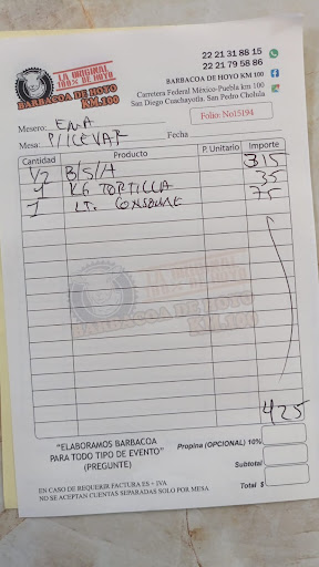 Es un lugar familiar donde los alimentos son de mucha calidad. El consome está muy bien sazonado, al estilo de la casa, da la impresión de ser jugo de carne por lo concentrado del sabor, tiene zanahorias y col. La carne tiene muy buen sabor y las quesadillas son generosas con el queso y el chicharrón. El mixiote también está muy rico, aunque la porción es pequeña. Al final pedimos un pay de queso y otro de piña y fueron una grata sorpresa pues estaban muy ricos; pedimos café para acompañar y quedamos muy satisfechos. El servicio es bueno, todos están al pendiente y no tardan en atender. Seguro...