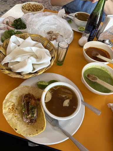One of my favorite spots with excellent service. They cook the meat in a pit with agave leaves. They serve fresh hand made tortillas, broth from the meat with all the trimmings, Queso fresco and avocado. 4 people can comfortably eat out of half a pound of boneless order. Outstanding food.